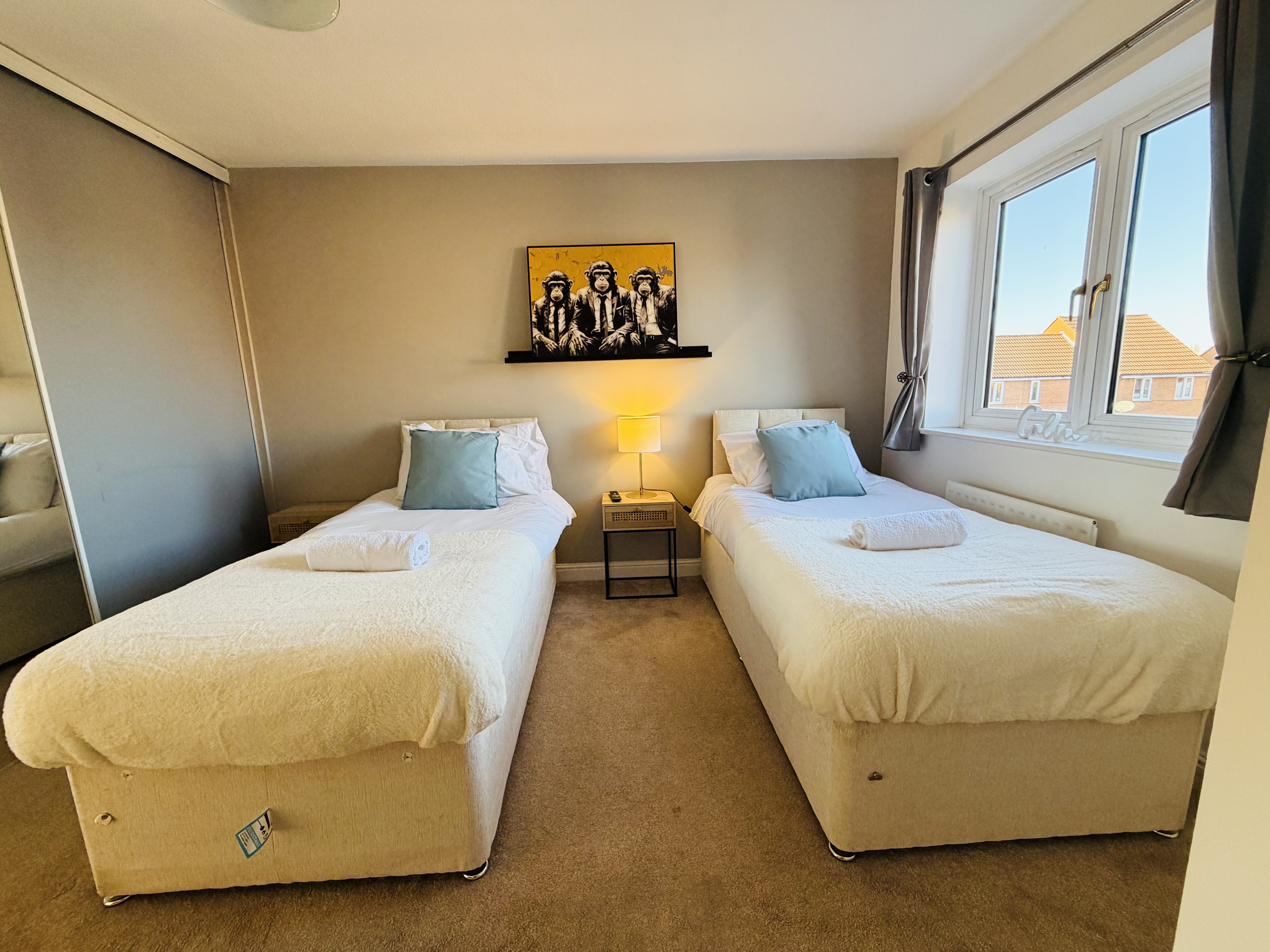 Welcome to Champflower House, a spacious and well-equipped 4-bedroom detached home in Furzton, Milton Keynes—ideal for contractor teams, business travellers, families, and concert guests. The house comfortably accommodates groups and longer stays, offering generous living space, flexible sleeping arrangements, and excellent transport links. Furzton Local Centre is just a 3-minute walk, while Milton Keynes city centre and station are only 7 minutes away. Whether you’re here for work, an event at MK Bowl, or a relaxed stay near Furzton Lake, Champflower House provides a true home-away-from-home experience. Sleeping Arrangements 🛌 Flexible bed setup to suit teams or families: • Bedroom 1 & 2: Zip-link beds (two singles by default or can be configured as a super-king on request) • Bedroom 3: 1x double and 1x single bed • Bedroom 4: One Double bed 🛁 Bathrooms • Master bedroom with private en-suite shower • Additional family bathroom on the first floor • Separate WC on the ground floor ⸻ Parking 🅿️ Free private driveway parking for up to 2 vehicles 🅿️ Additional free on-street parking directly outside ✔ Ideal for contractors and multiple vehicles ⸻ Key Amenities 🏡 Fully furnished and thoughtfully equipped for short or long stays: • ✅ 24/7 self check-in via secure lockbox • ✅ 50” Smart TVs in living room & master bedroom • ✅ Sky TV & Netflix included • ✅ Superfast Wi-Fi throughout • ✅ Dedicated study / work desk • ✅ Fully equipped kitchen (oven, hob, microwave, dishwasher, cookware & utensils) • ✅ Separate dining room • ✅ Utility room with washer, dryer, iron & ironing board • ✅ Fresh towels & hotel-quality linen provided • ✅ Hairdryer & toiletries included • ✅ Private, fully fenced garden with seating (seasonal) • ✅ Travel cot & high chair available on request ⸻ Location Highlights 📍 Furzton Local Centre – 3 min walk (supermarket & takeaways) 📍 Furzton Lake – 15 min walk 📍 Milton Keynes City Centre & Train Station – 7 min drive 📍 MK Bowl / Stadium MK – 7 min drive 📍 Bletchley Park – 8 min drive 📍 The Open University – 8 min drive ⸻ Nearby Attractions • Willen Lake – 12 mins • Gulliver’s Land – 12 mins • Woburn Safari Park – 20 mins ⸻ Nearby Towns • Buckingham – 20 mins • Leighton Buzzard – 22 mins • Northampton / Aylesbury / Luton – 30 mins • Bedford / Bicester / Brackley – 35 mins ⸻ Guest Access You’ll have exclusive use of the entire house throughout your stay—no shared spaces.