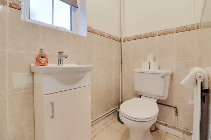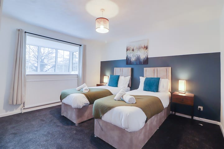 Offering a garden and garden view, Spacious 5-Bedroom Home, Sleeps 9, Near Hospital with Driveway Parking is located in Peterborough, 11 km from Peterborough Cathedral and 18 km from Burghley House. This holiday home offers free private parking, a shared kitchen and free WiFi. The property is non-smoking and is set 1.6 km from Longthorpe Tower. The spacious holiday home has 2 bedrooms, a flat-screen TV with streaming services and a fully equipped kitchen that provides guests with a dishwasher, an oven, a washing machine, a microwave and a toaster. Towels and bed linen are offered in the holiday home. Guests can also relax in the shared lounge area. Fotheringhay Castle is 20 km from the holiday home, while Rockingham Castle is 41 km from the property. Cambridge City Airport is 69 km away.