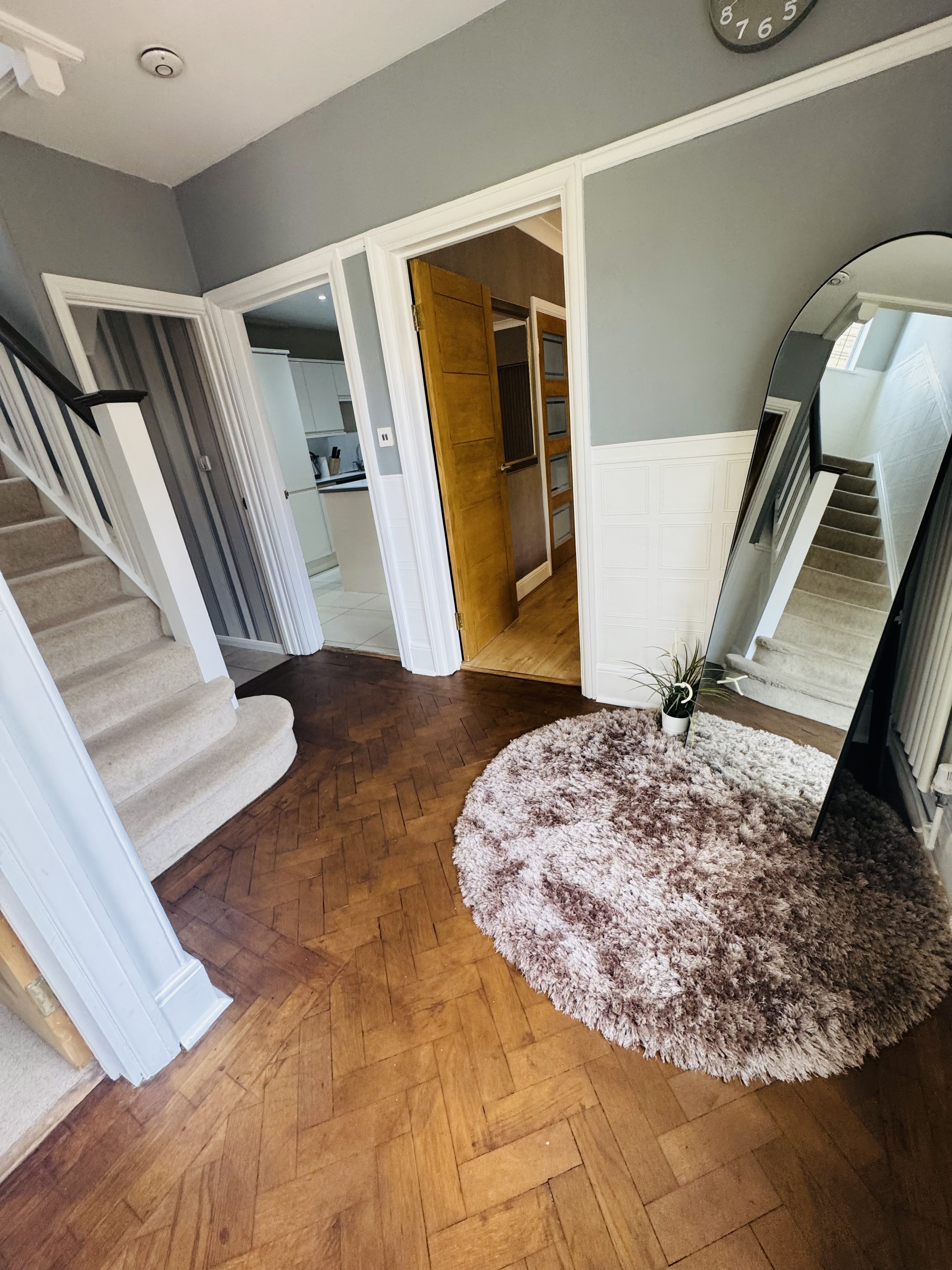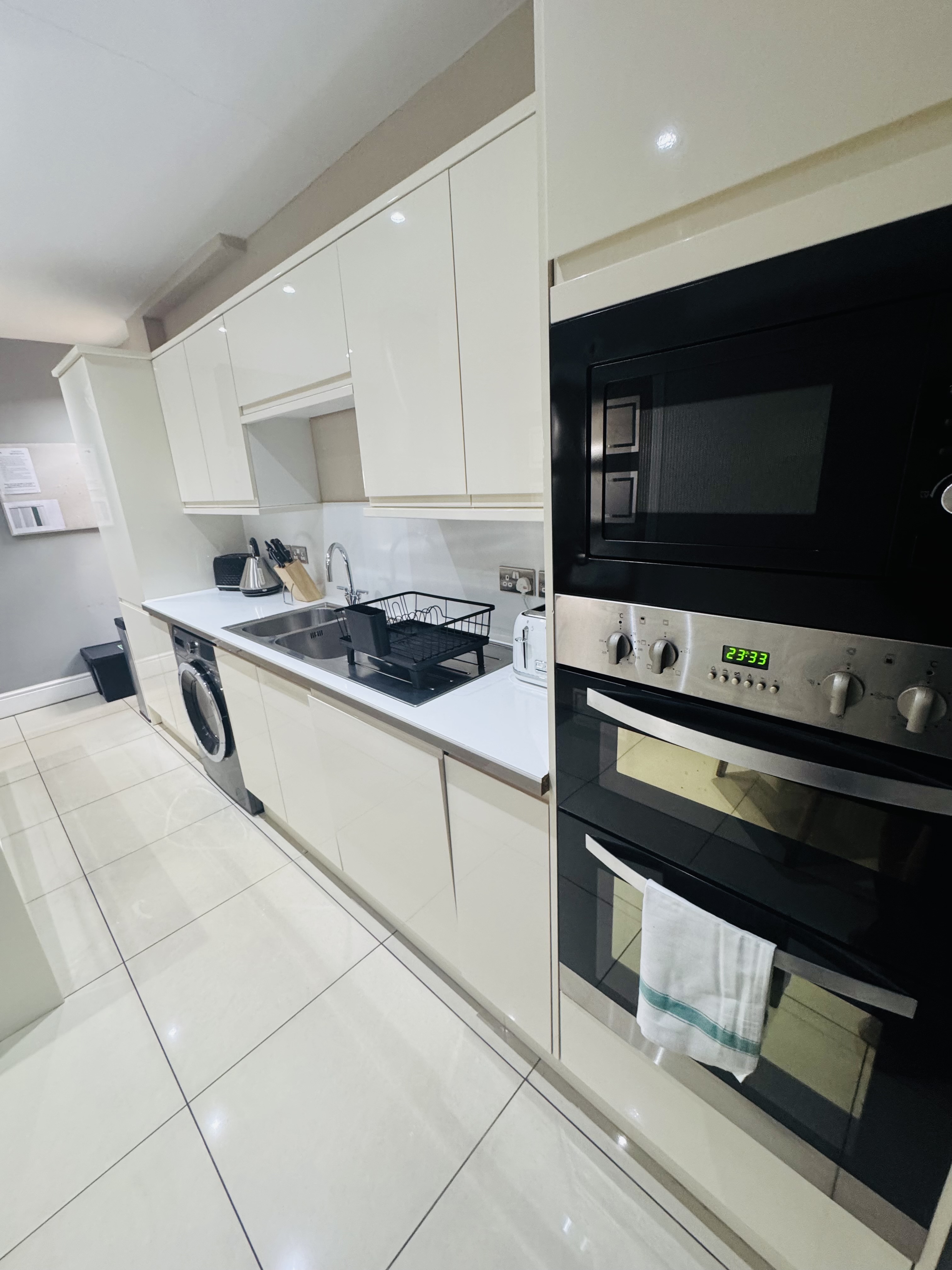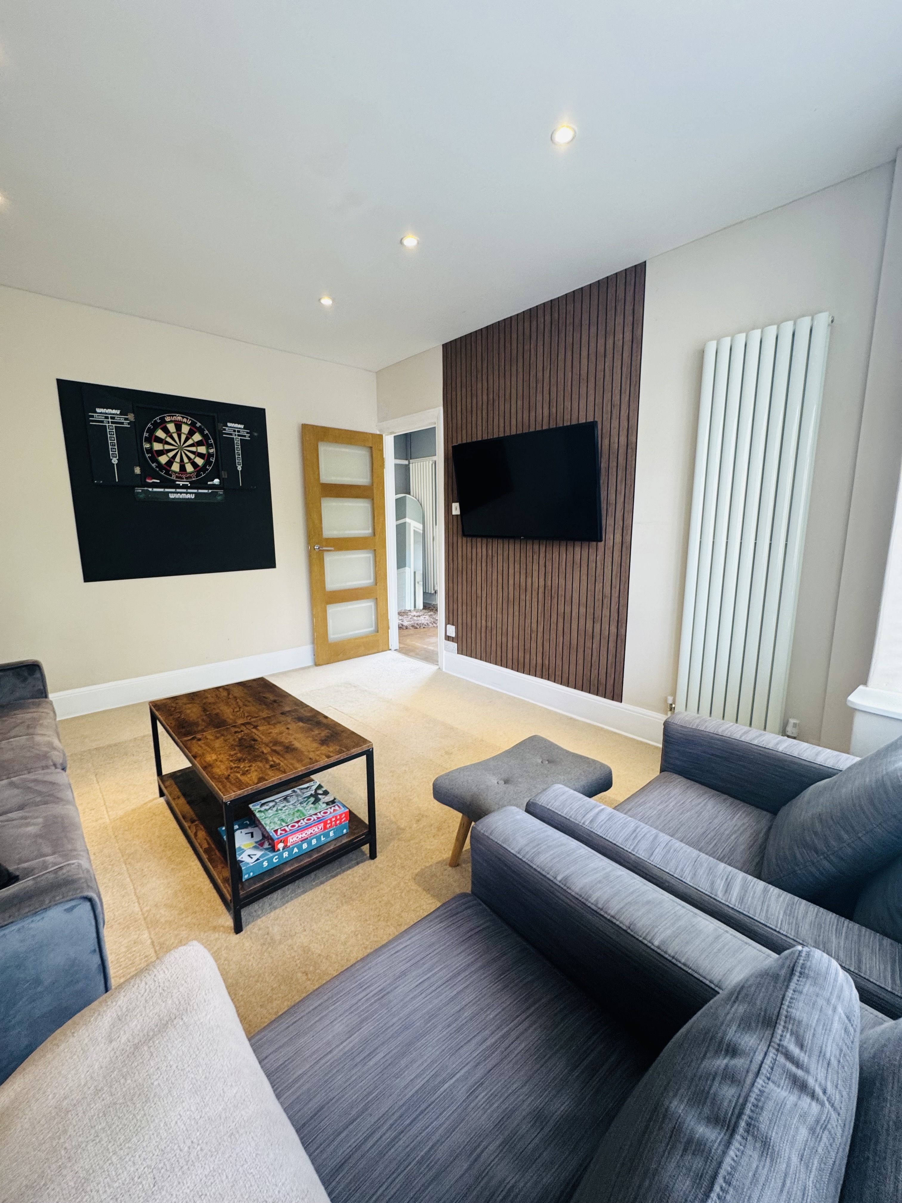This spacious and well-equipped four-bedroom property is ideal for contractors, large groups, and families looking for comfort, convenience, and privacy. Located in a quiet residential area just minutes from the city centre and train station, this property offers the perfect balance of accessibility and relaxation. The Space Designed with both comfort and practicality in mind, the home features: 4 generous bedrooms: 2 king-size bedrooms (both with private en-suites) 1 double bedroom 1 twin bedroom Additional sleeping space with a comfortable sofa bed There is also: A family bathroom with bath and shower A separate toilet upstairs A downstairs WC – ideal for larger groups Living & Dining Enjoy two separate lounges, both equipped with Smart TVs and Netflix, giving everyone space to relax and unwind. Whether you’re watching a film, playing games, or enjoying downtime after work, there’s room for all. A large 8-seater dining table makes group meals easy and enjoyable. Fully Equipped Kitchen The modern kitchen includes everything you need for a comfortable stay: Double oven Dishwasher Full range of cookware, utensils, and appliances Perfect for home-cooked meals or longer stays. Entertainment & Extras Dartboard Selection of games Comfortable seating areas throughout Outdoor & Parking Off-street parking suitable for cars and vans Front garden space Quiet, private setting Access & Convenience 24/7 self check-in via secure lockbox Complete privacy throughout your stay Location Conveniently located: Close to Peterborough city centre Easy access to the train station Nearby shops, restaurants, and amenities Whether you’re a contractor needing a practical base or a family looking for a relaxing stay, this property has everything you need for a comfortable and enjoyable visit.