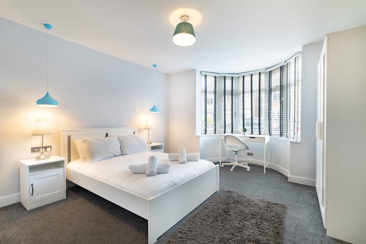 Spacious 5-bedroom home in the City Centre, perfect for families, friends, or business stays. Each bedroom has a double bed, with room for up to 10 guests. Enjoy 2 modern bathrooms, a fully equipped kitchen for home cooking, and a bright living area for relaxing together. Step outside into your private side garden – a rare city find! With shops, cafés, attractions, and transport just minutes away, this is the ideal base for your city stay.